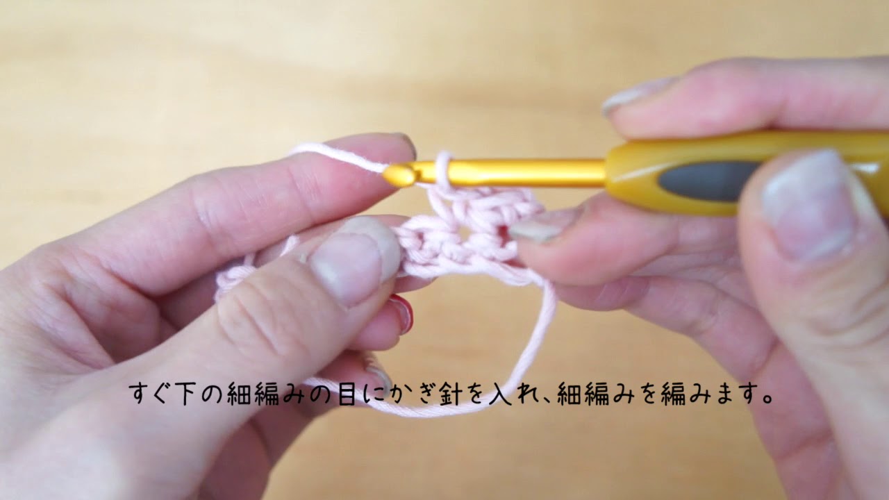 動画でもあるように、鎖編みから細編みを編むとき